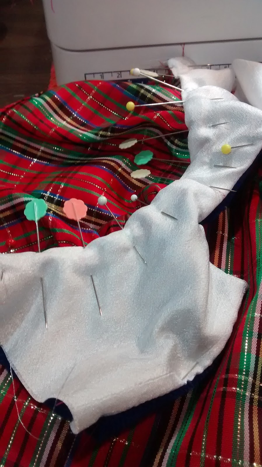 I found a piece of batting that was just the right size, and a nice red and green print for the back. With the application of a striped binding and a little channel quilting between the rows, it was done!